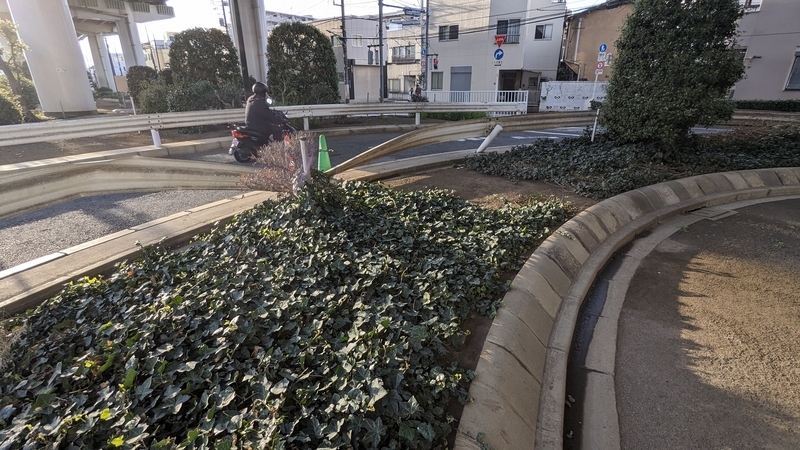 首都高の下に謎の空間がありますね。歩いていくと、その果てにはへし曲ったガードレールが特徴の広場ともいえない空間があります。